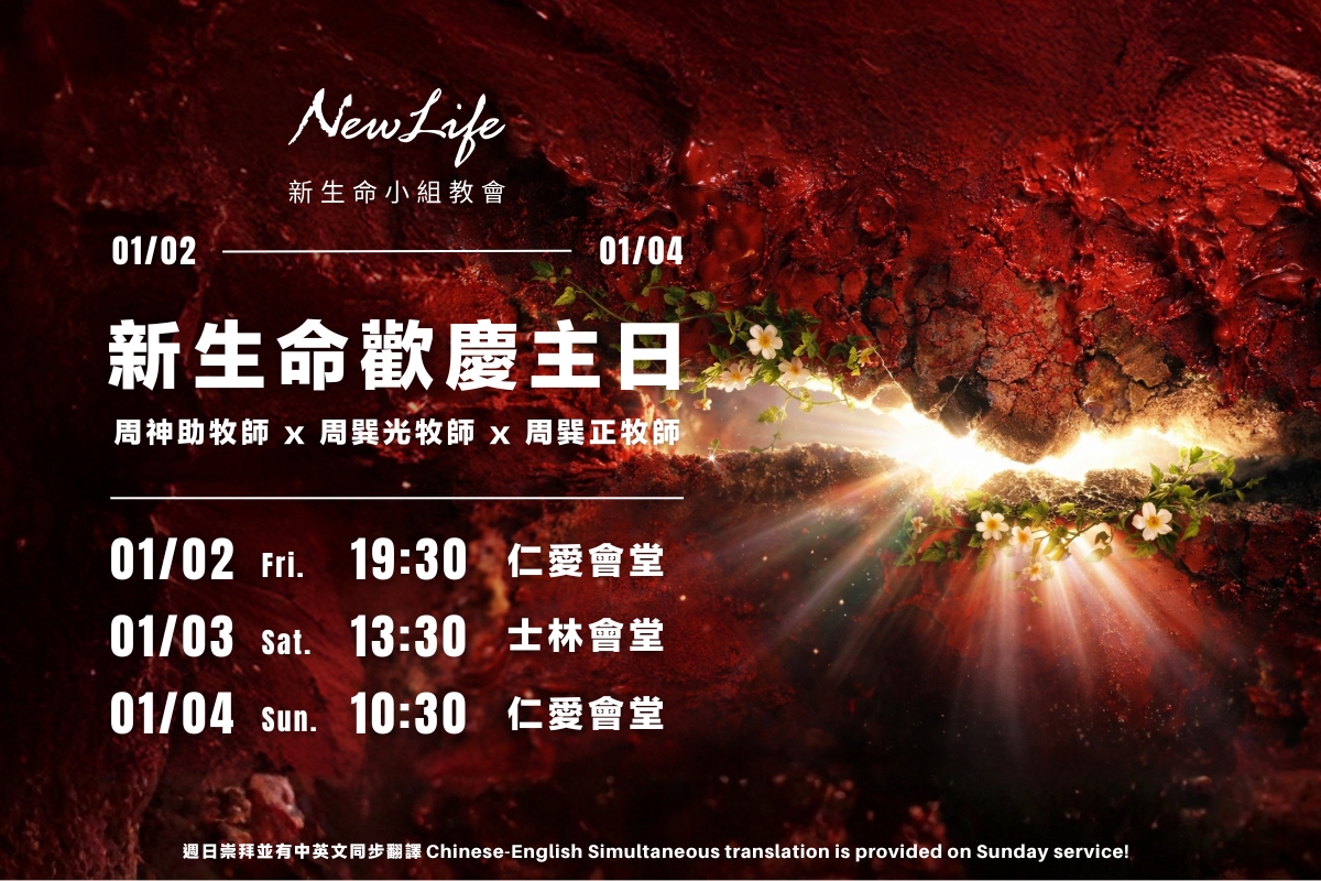 本週主日資訊 More 1/2-1/4 新年歡慶主日 頭條快報 最新消息 2025.03.16 【教會報導】2025同工退修會——牧養人的靈魂,起來做教會領袖 More 小組頻道 More. 欣美小組 More. 昌賢小組 More. 朵拉小組 小組頻道 欣美小組 昌賢小組 朵拉小組 More