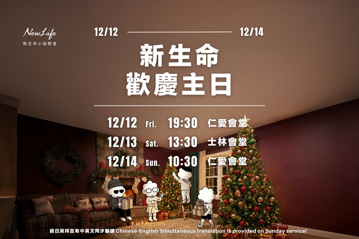 Service This Week More 12/12-12/14 Celebration Service 頭條快報 Headlines 2024.04.20 2024 Revival Conference More 小組頻道 More. Bess小組 More. 泊羽小組 More. 庭妤小組 小組頻道 Bess小組 泊羽小組 庭妤小組 More